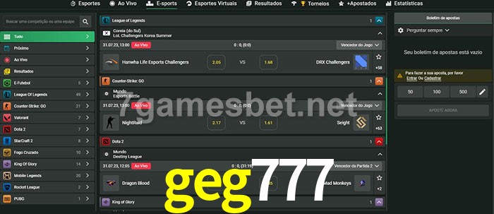 A aposta geg777 oferece aos jogadores a experiência mais conveniente de apostas em eSports!